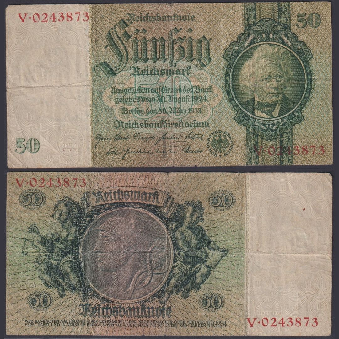 Deutsches Reich 1933 Ro. 175c P#182 I/V 50 Reichsmark RM - David Hansemann