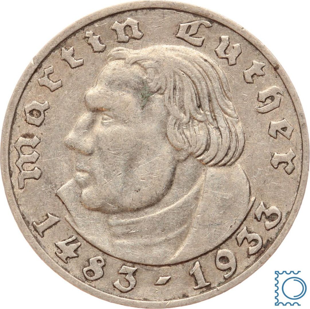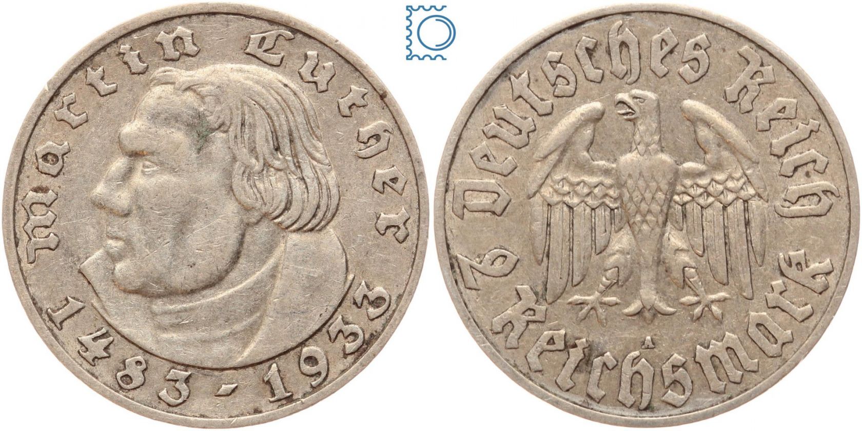 Deutsches Reich, 2 Mark 1933 A, Martin Luther, Jäger 352