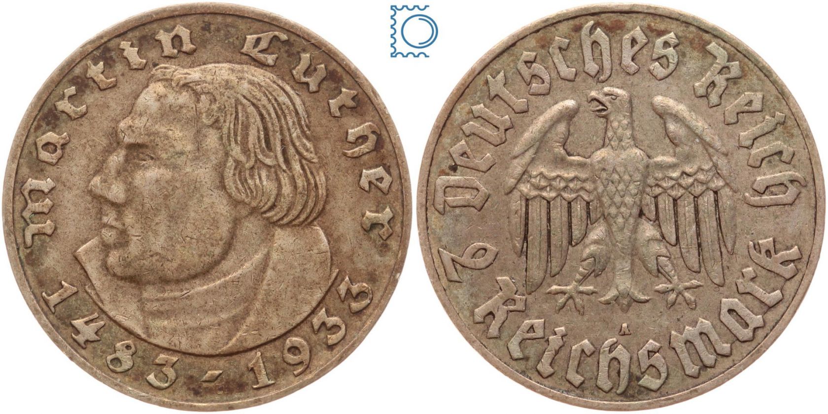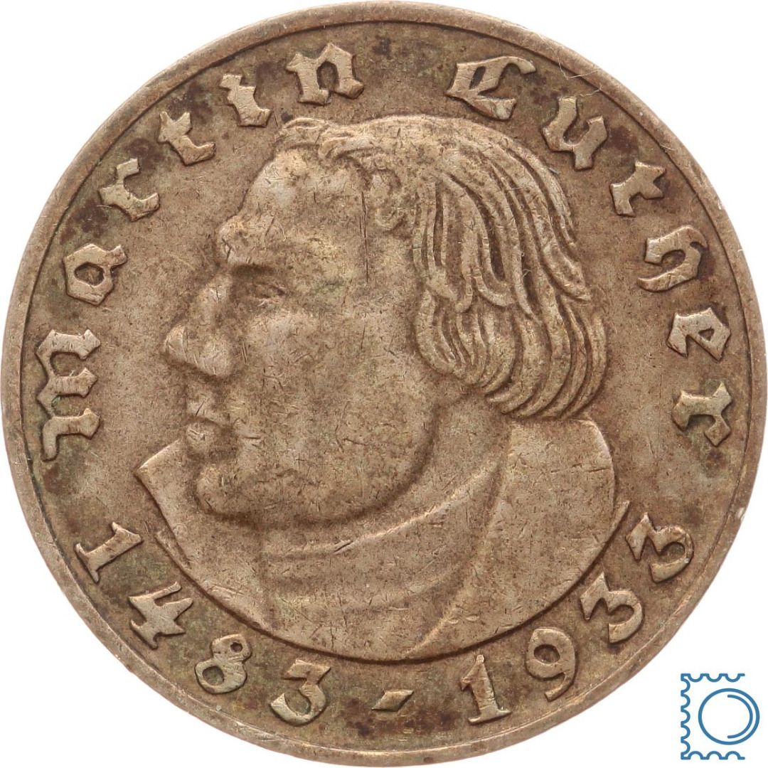 Deutsches Reich, 2 Mark 1933 A, Martin Luther, Jäger 352