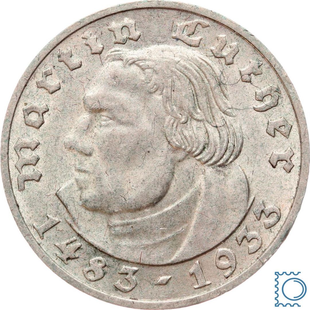 Deutsches Reich, 2 Mark 1933 D, Martin Luther, Jäger 352