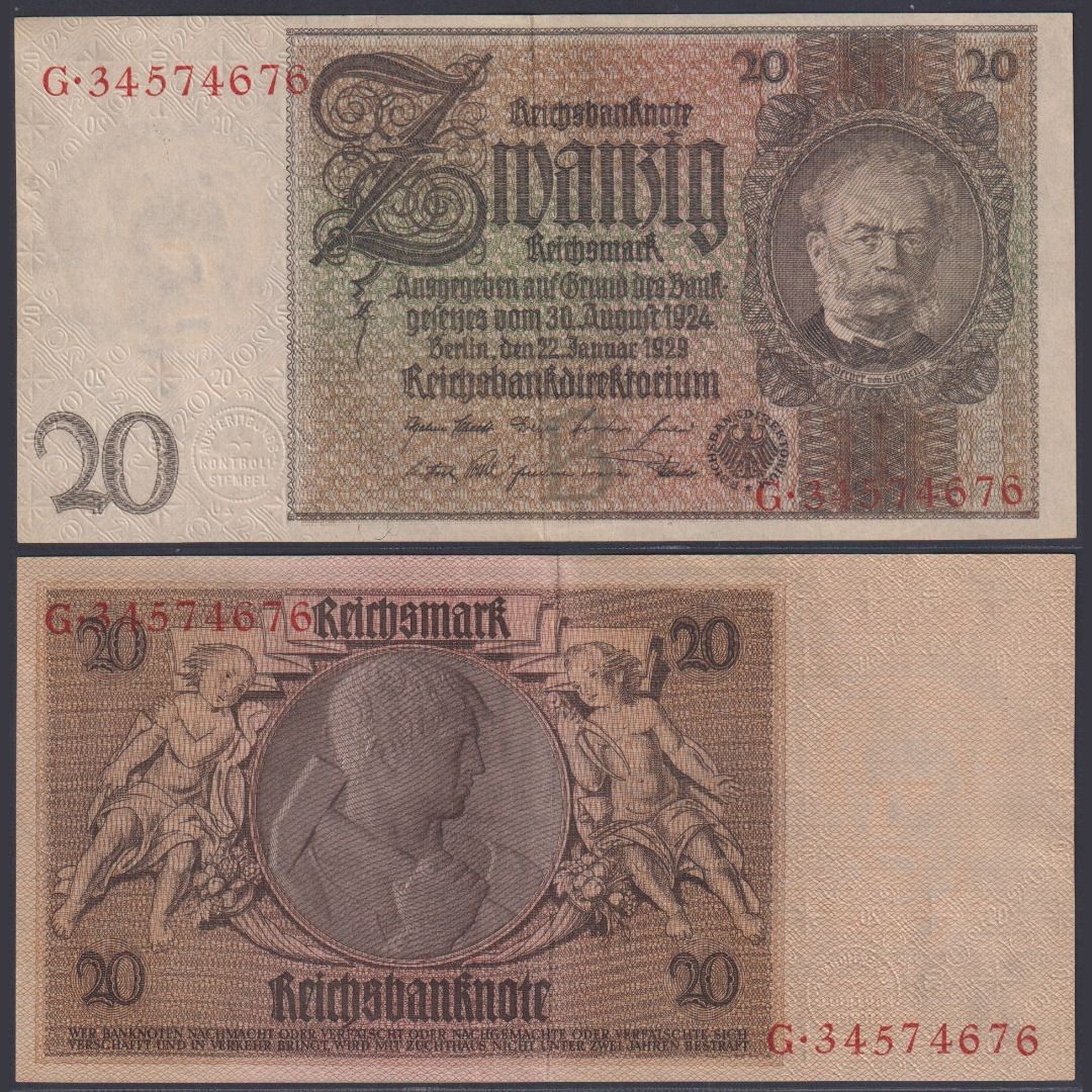 Deutsches Reich 20 Reichsmark DEU-184a Ro.174a P#181 B/G Deutsche Reichsbank