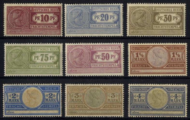 Deutsches Reich 9 Frachtsempel Fiskalmarken 10 Pf. - 4 Mark postfrisch