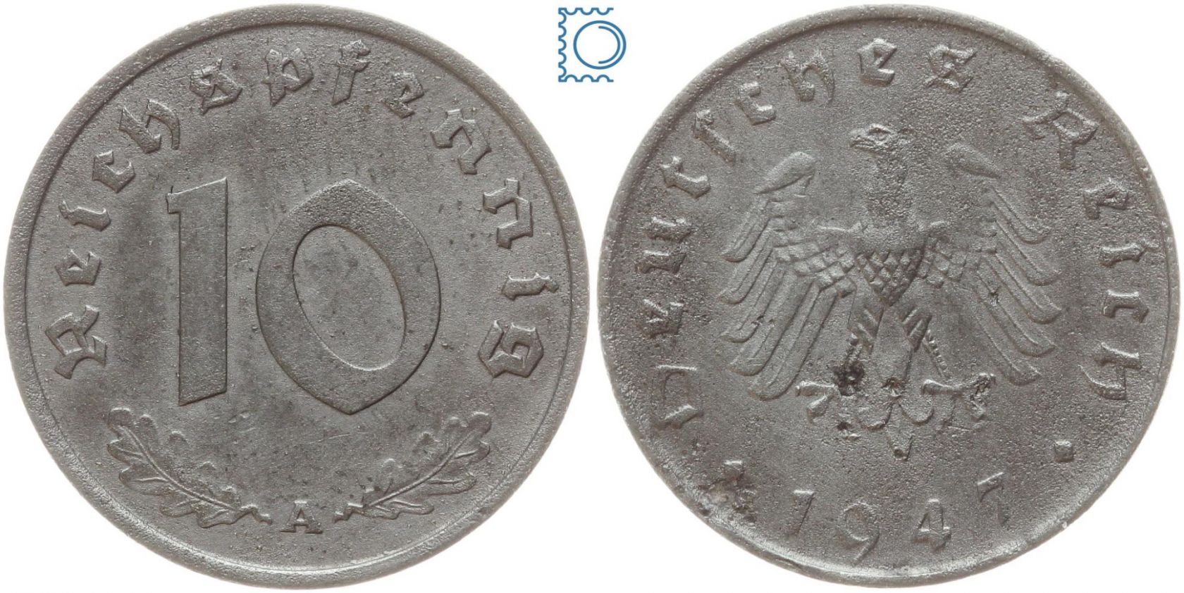 Deutschland Alliierte Besetzung, 10 Pfennig 1947 A, J. 375