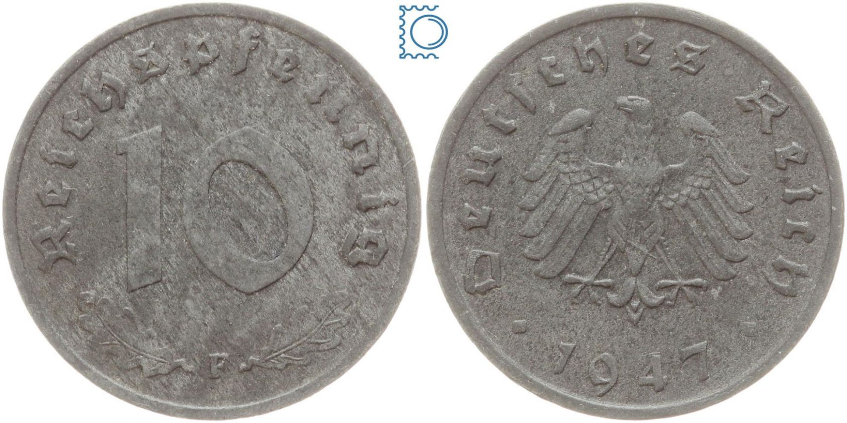 Deutschland Alliierte Besetzung, 10 Pfennig 1947 F, J. 375