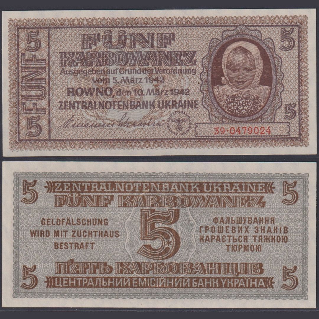 Dt. Besetzung Ukraine 5 Karbowanez ZWK-49 Ro.593 P#51 Zentralnotenbank