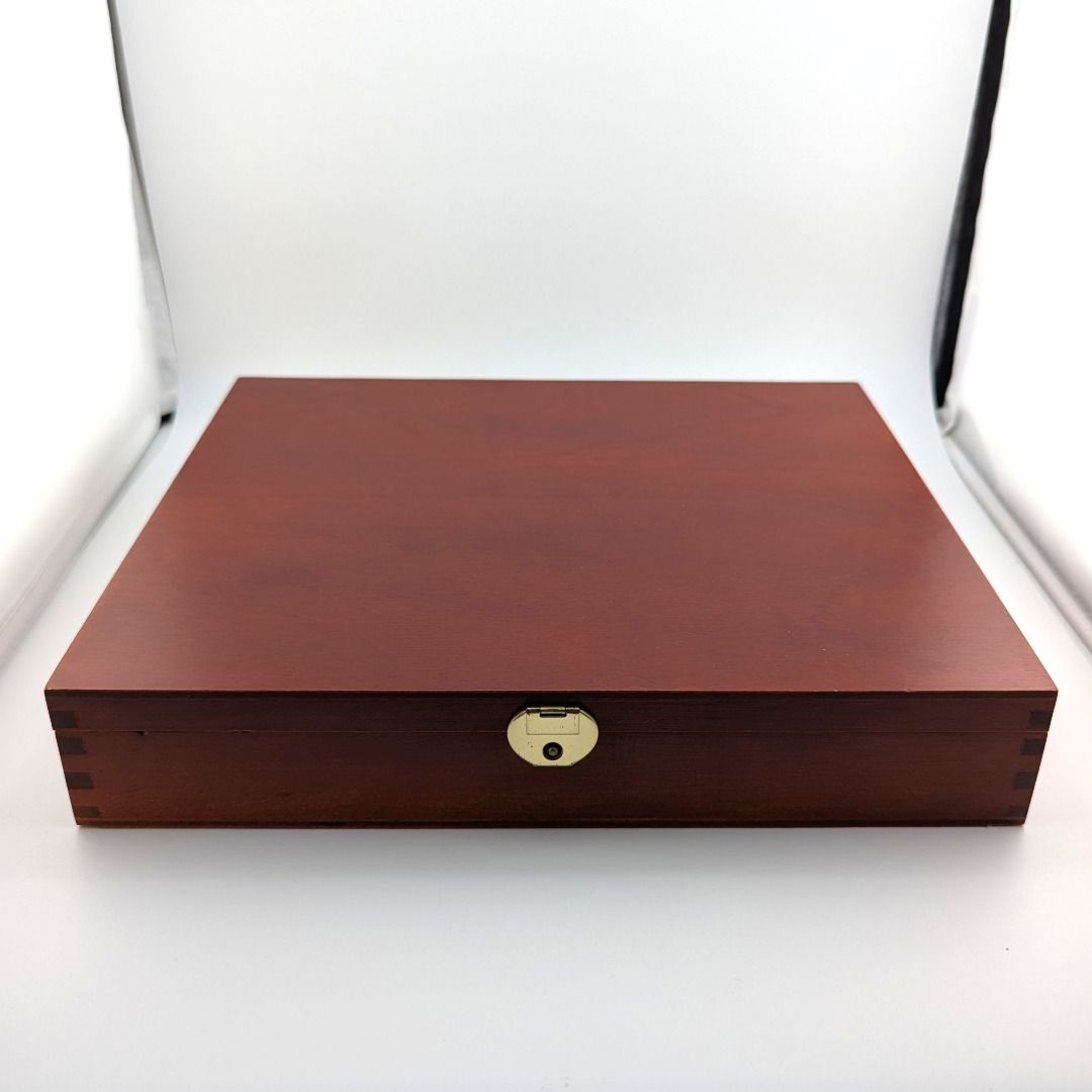 Münzen bankfrischer Erhaltung gekapselt in schöner Holzmünzkassette.