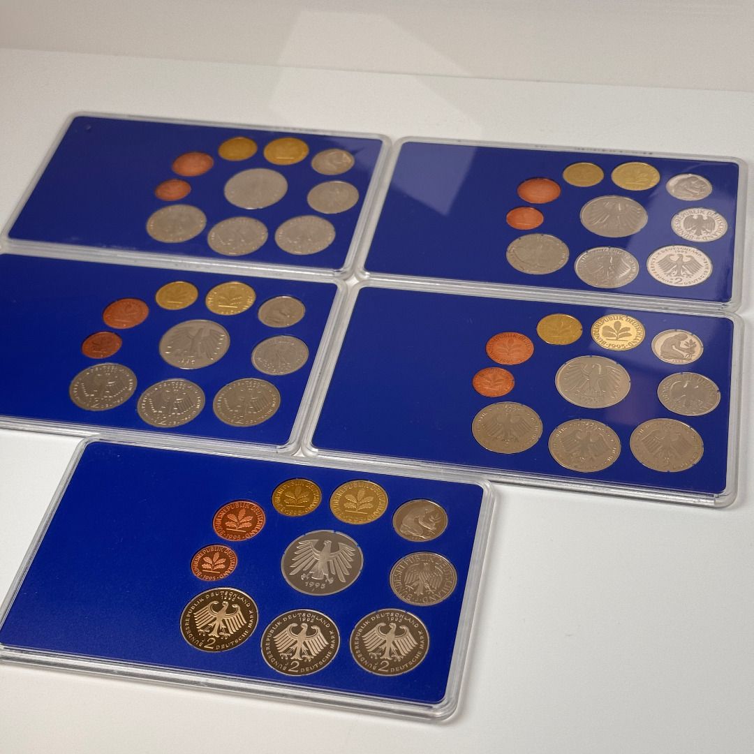 Kursmünzensätze der fünf verschiedenen Prägestätten von 1995 in polierter Platte (PP)
