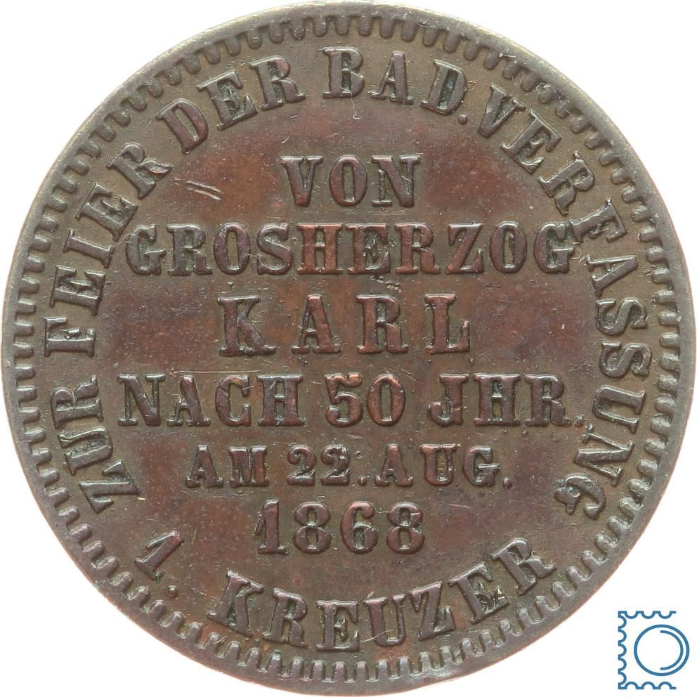 Baden, Friedrich I., Kursmünze 1 Kreuzer | Badische Verfassung 1868