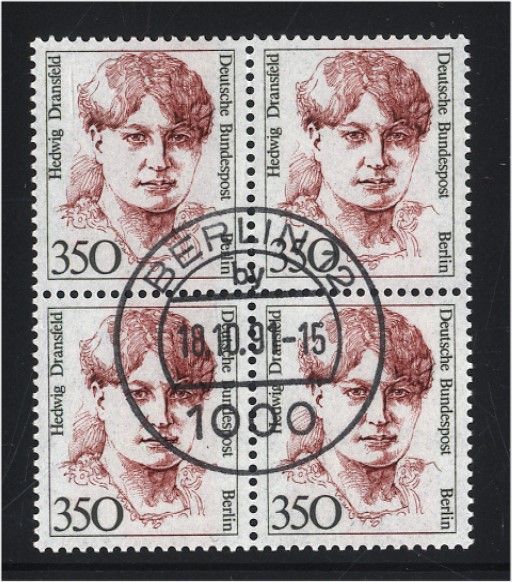 Berlin 828 | 350 Pf. Frauen Viererblock gestempelt Vollstempel geprüft Schlegel