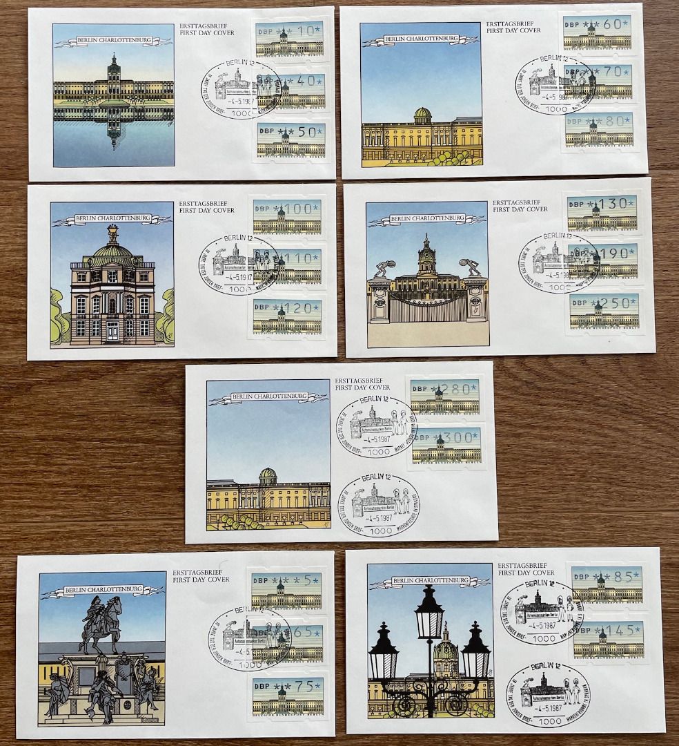 Beide Automatenmarkensätze auf 7 Schmuck-FDC in einwandfreier Erhaltung.