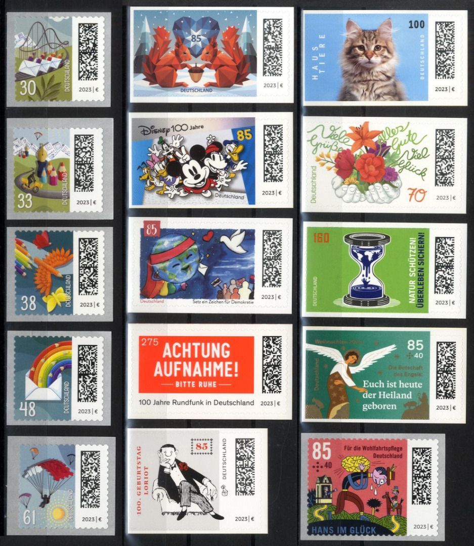 Alle selbstklebenden Briefmarken aus 2023 in postfrischer Erhaltung ohne die seltene MiNr. 3801 Brandenburger Tor Briefmarke, weil sie bei Ebay nicht verkauft werden darf. Auf Anfrage erhältlich, damit Ihre Sammlung auch komplett ist!