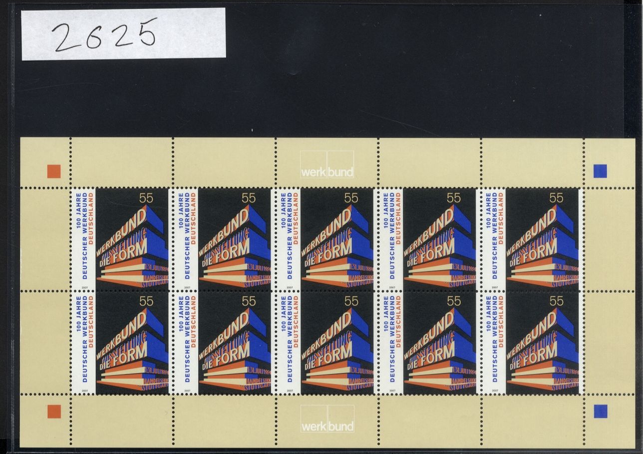Bund, Michel Nr. 2625 Zehnerbogen postfrisch - Deutscher Werkbund
