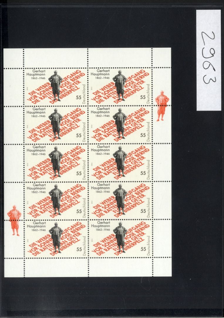 Bund, Michel Nr. 2963 Zehnerbogen postfrisch - Gerhart Hauptmann