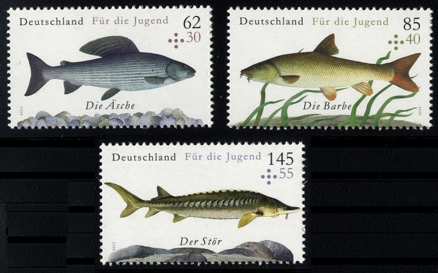 Bund, Michel Nr. 3169-3171 postfrisch - Fische / Äsche / Stör / Barbe