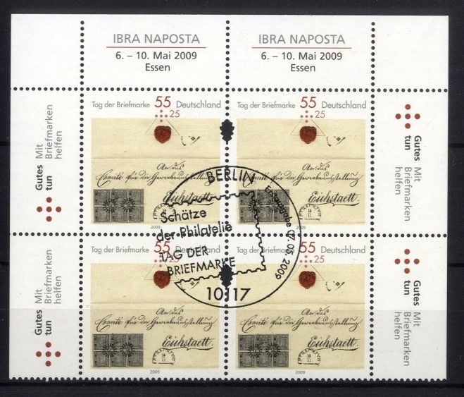Bund, Nr. 2735 Sr/Sl Eckrand Viererblock ESST Berlin - IBRA NAPOSTA 2009 Tag der Briefmarke