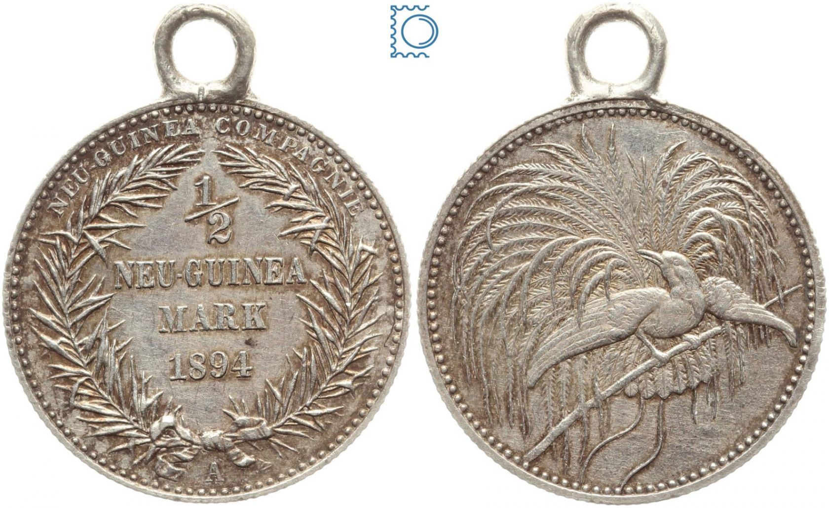 Deutsch-Neuguinea, Neu-Guinea ½ Mark 1894 A, Kaiser Wilhelm II., gehenkelt
