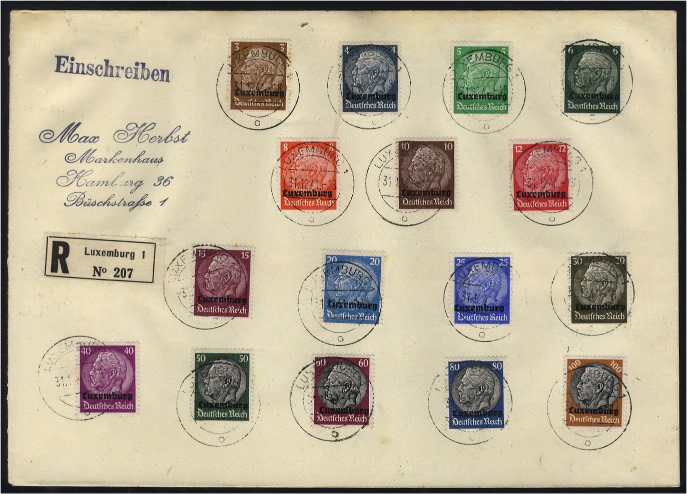 Deutsche Besetzung Luxemburg MiNr. 1-16 Satzbrief gestempelt R-Brief