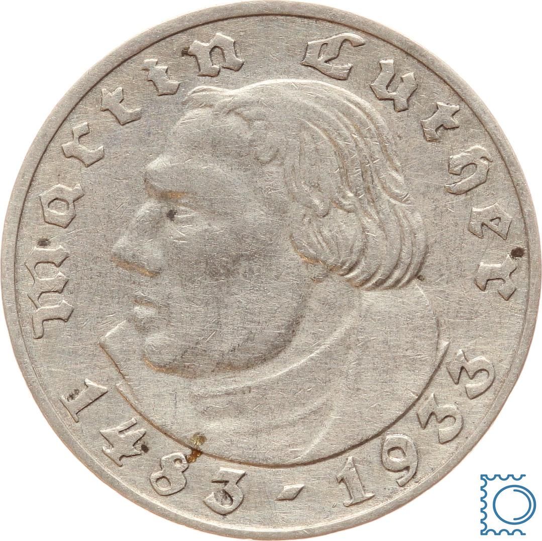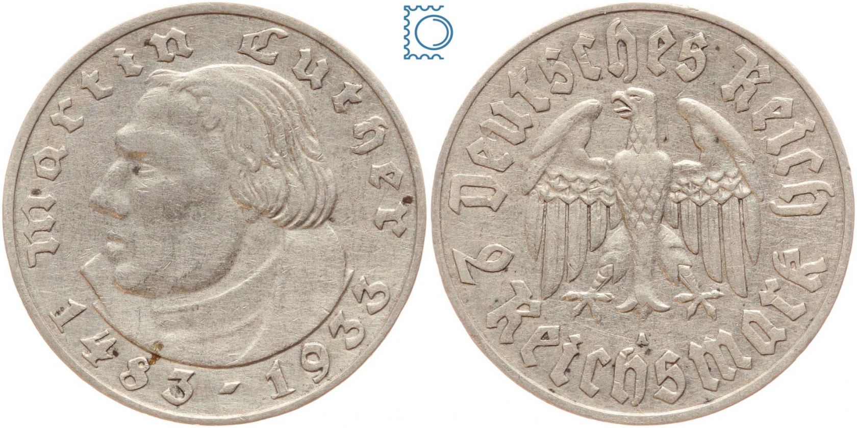 Deutsches Reich, 2 Mark 1933 A, Martin Luther, Jäger 352