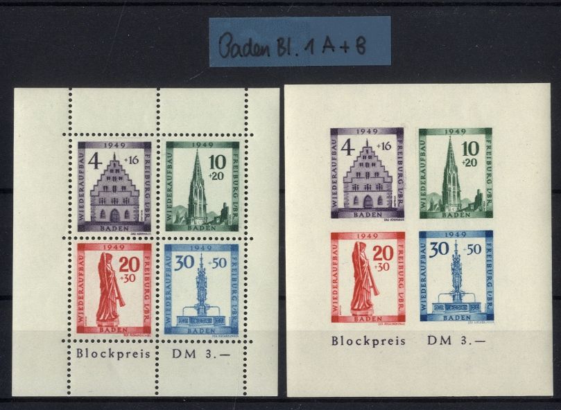 Französische Zone, Baden Block 1 A + 1 B Blockpaar postfrisch