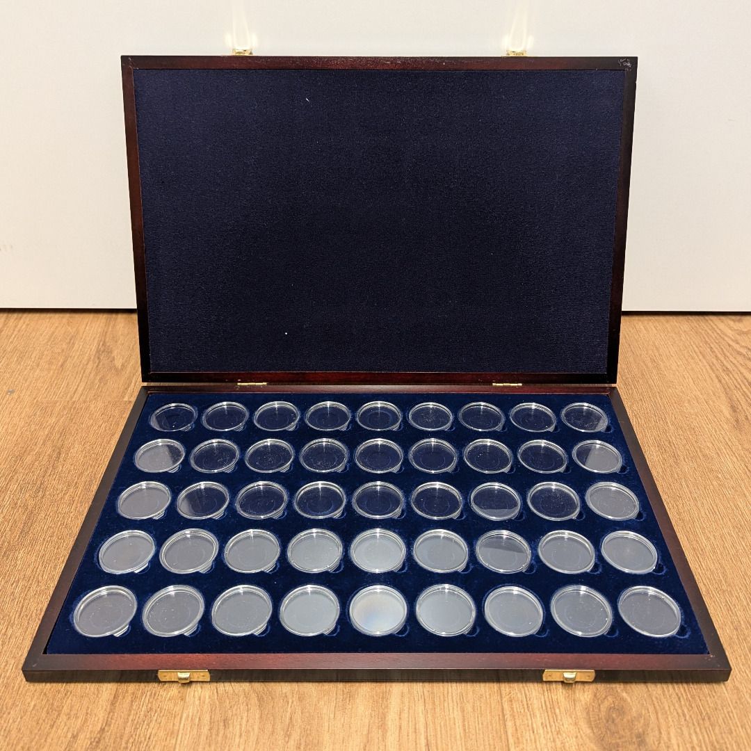 Münzen-Sammelbox Holz für 45 x 10/20 Euro oder 10 DM - mit Kapseln - gebraucht