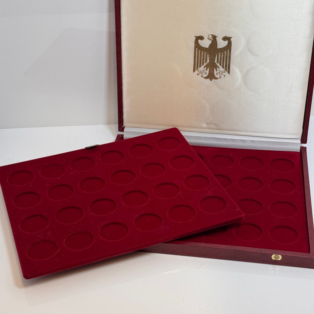 Münzkassette mit zwei Tableaus für bis zu 48x 10-DM Silbergedenkmünzen