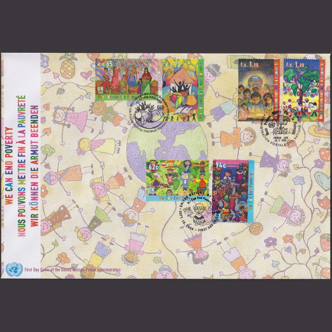 UNO Trio Brief | FDC 2008 | Wir können die Armut beenden | Genf Wien New York