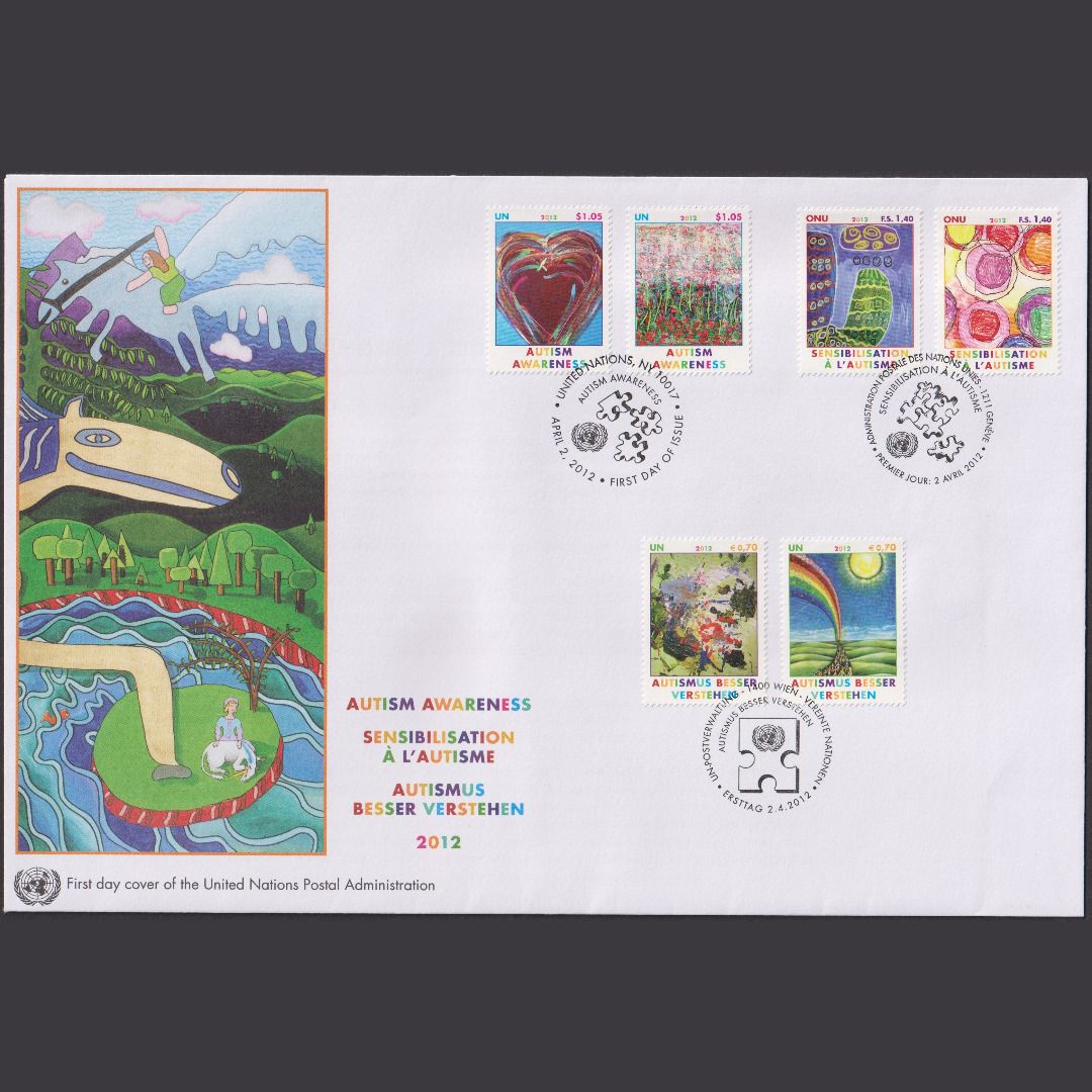 UNO Trio Brief | FDC 2012 | Autismus besser verstehen | Genf Wien New York