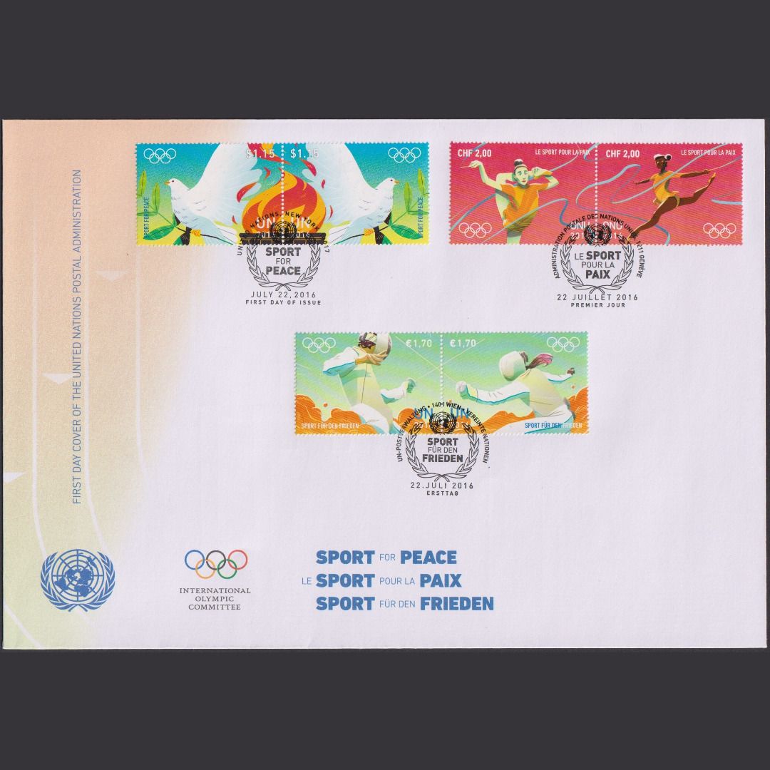 UNO Trio Brief | FDC 2016 | Sport für den Frieden | Genf Wien New York