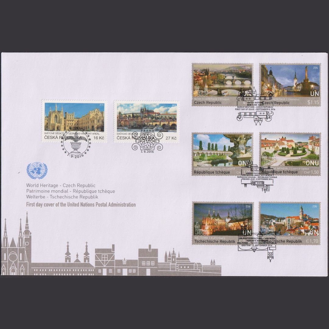 UNO Trio Brief | FDC 2016 | Welterbe - Tschechische Republik | Genf Wien New York