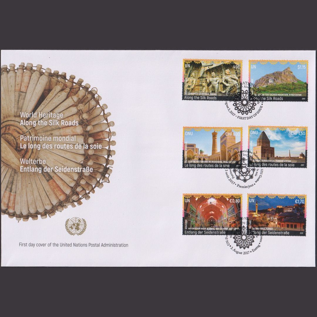 UNO Trio Brief | FDC 2017 | Welterbe Entlang der Seidenstraße | Genf Wien New York