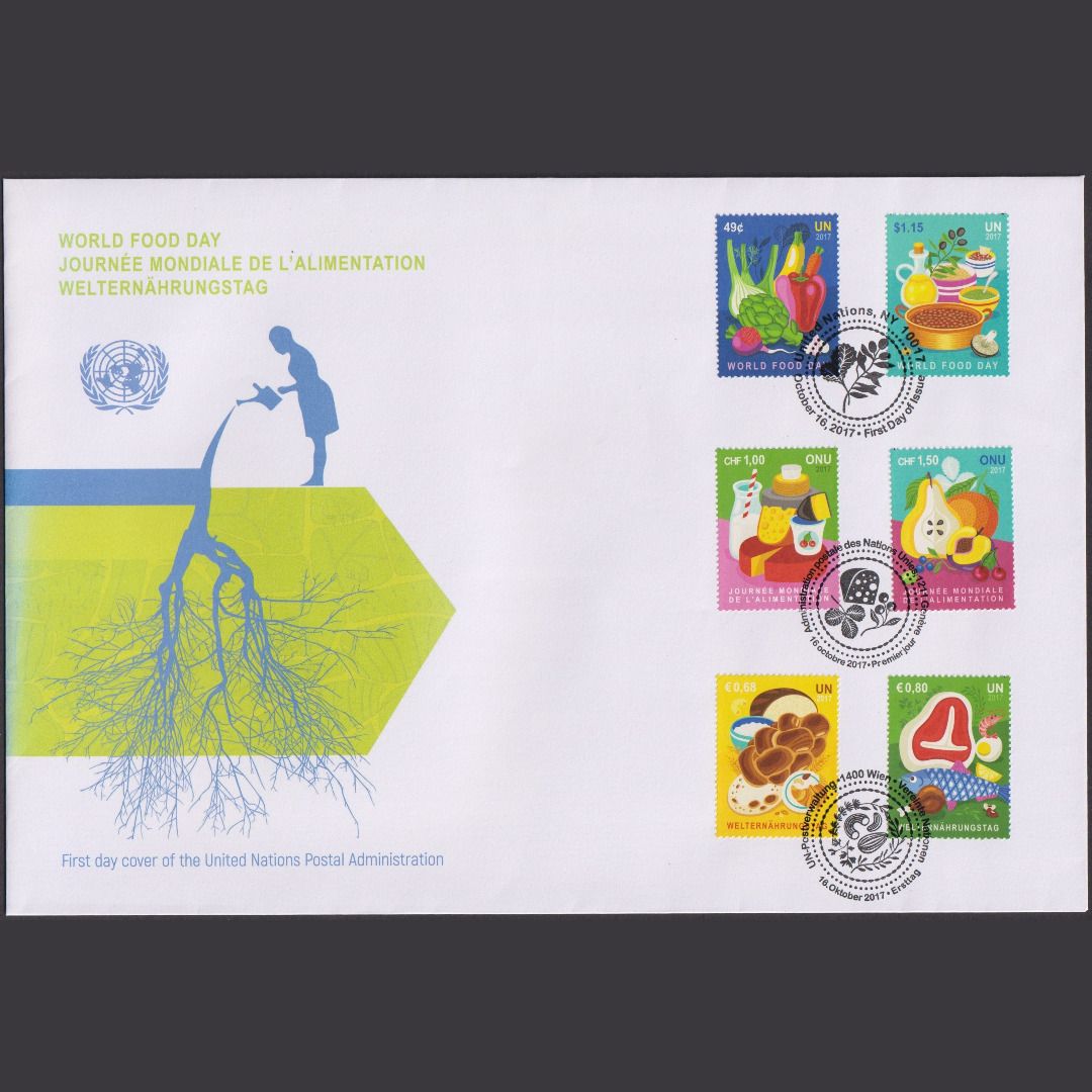 UNO Trio Brief | FDC 2017 | Welternährungstag | Genf Wien New York