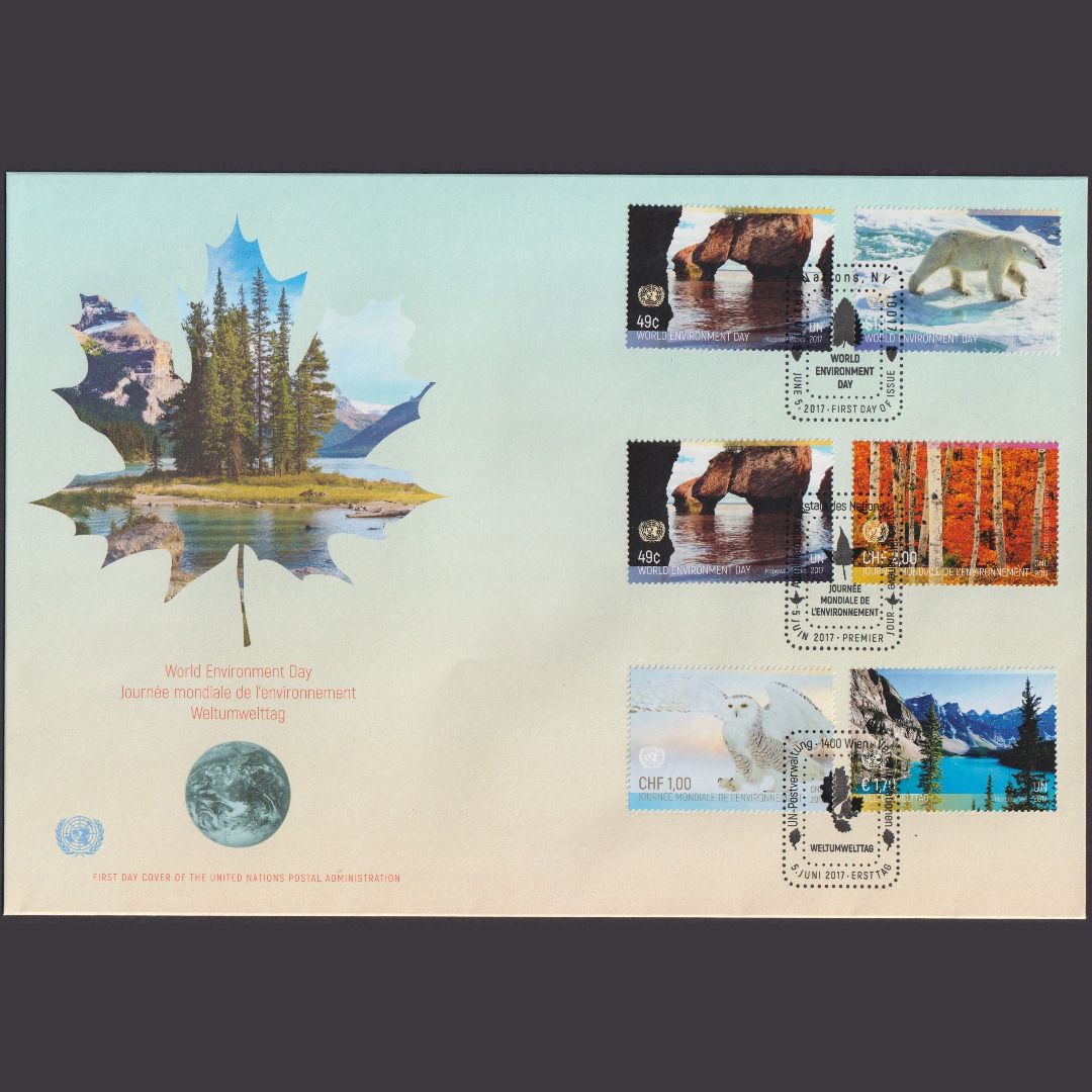 UNO Trio Brief | FDC 2017 | Weltumwelttag | Genf Wien New York