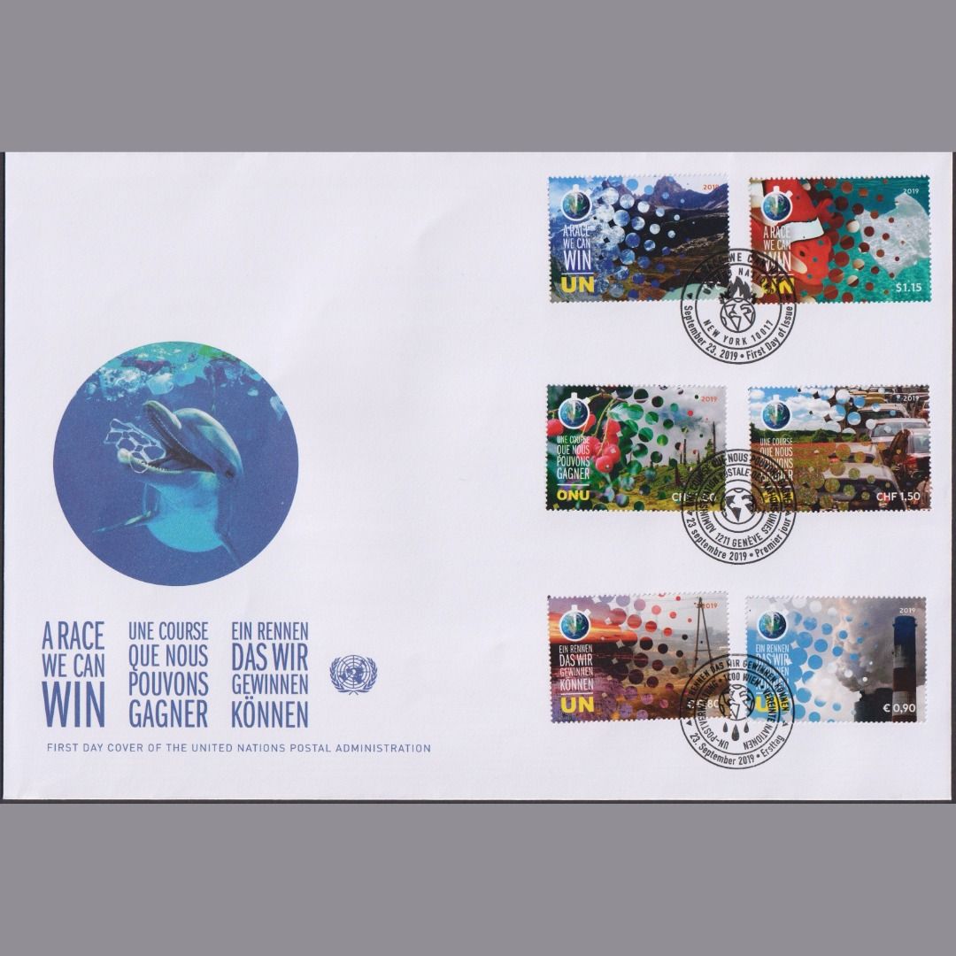 UNO Trio Brief | FDC 2019 | Wettlauf, den wir gewinnen können | Genf Wien New York