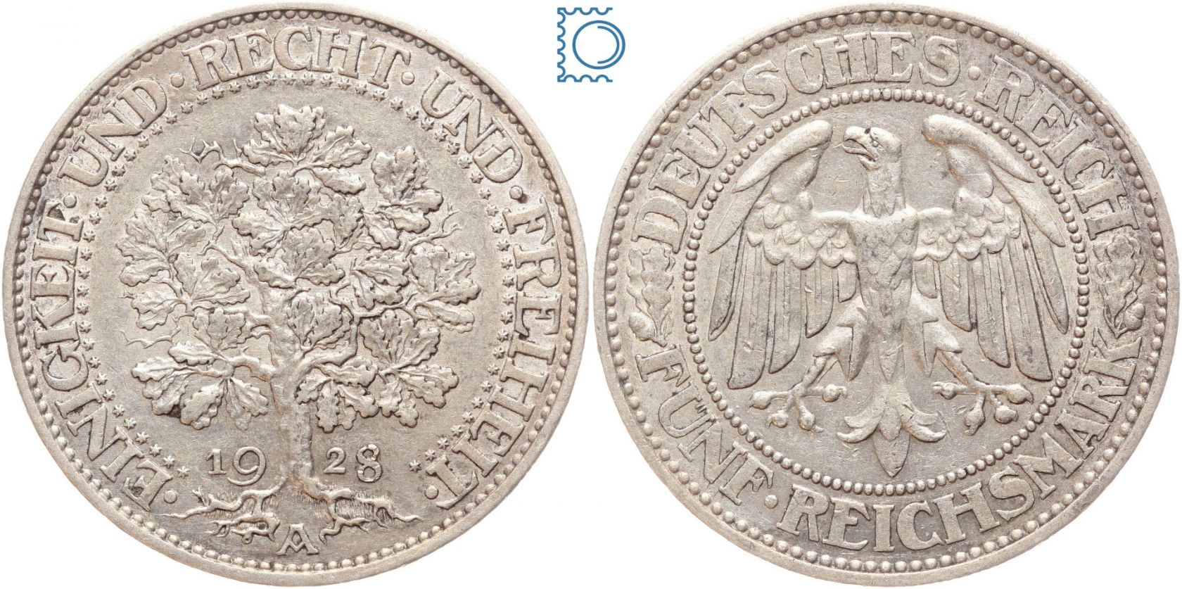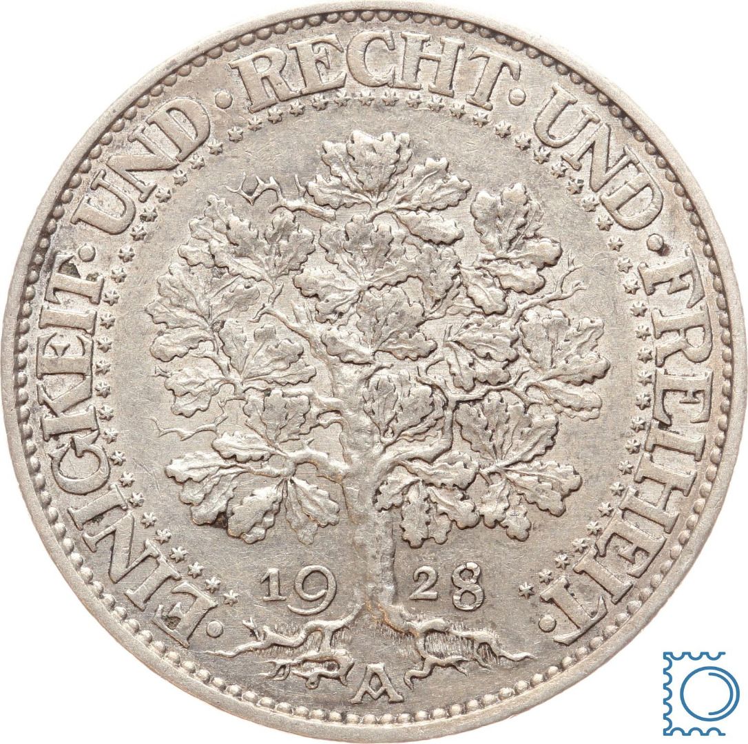 Weimarer Republik 5 Reichsmark 1928 A - Eichbaum - Silber - J. 331