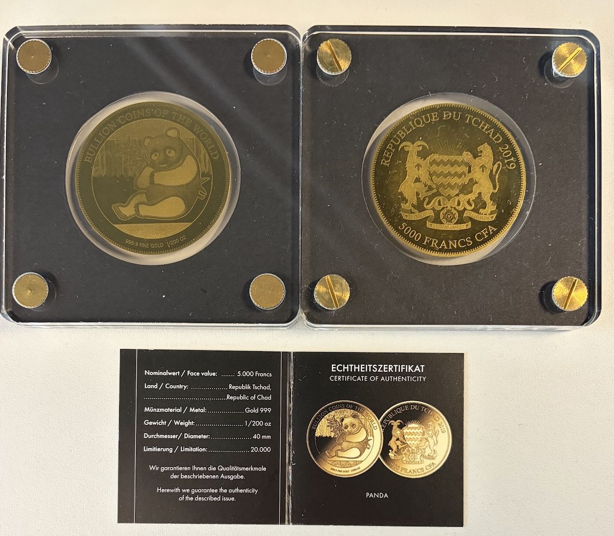 Goldmünze TSCHAD 2019 - Bullion PANDA 5.000 Francs 1/200 Oz Gold 999