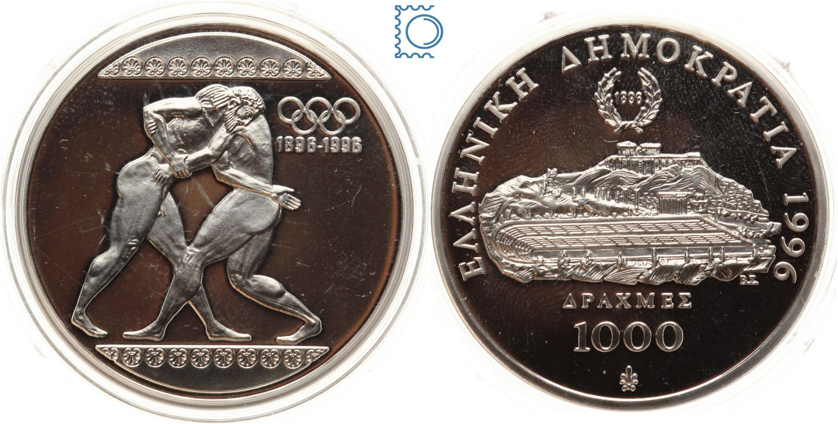 Griechenland 1000 Drachmen 1996 Ringer, 1 Unze, 1 Oz. Silber PP in Kapsel