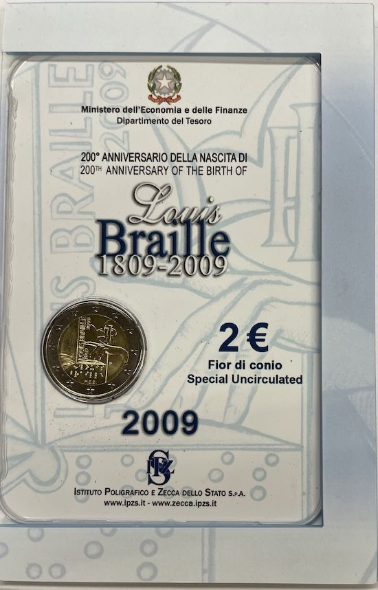Italien 2 Euro 2009 - Louis Braille - Original in Coincard Blister OVP