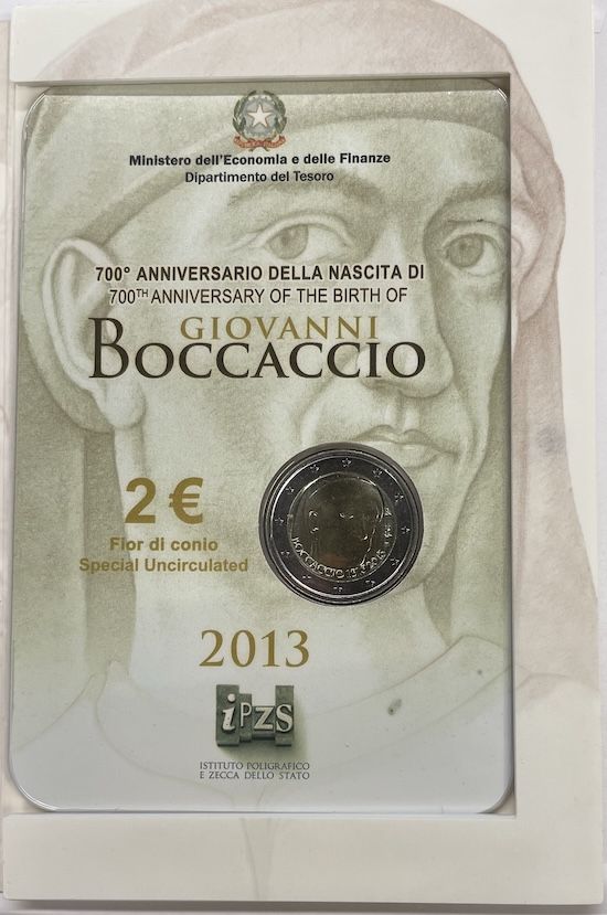 Italien 2 Euro 2013 - Giovanni Boccaccio - Original in Coincard Blister OVP