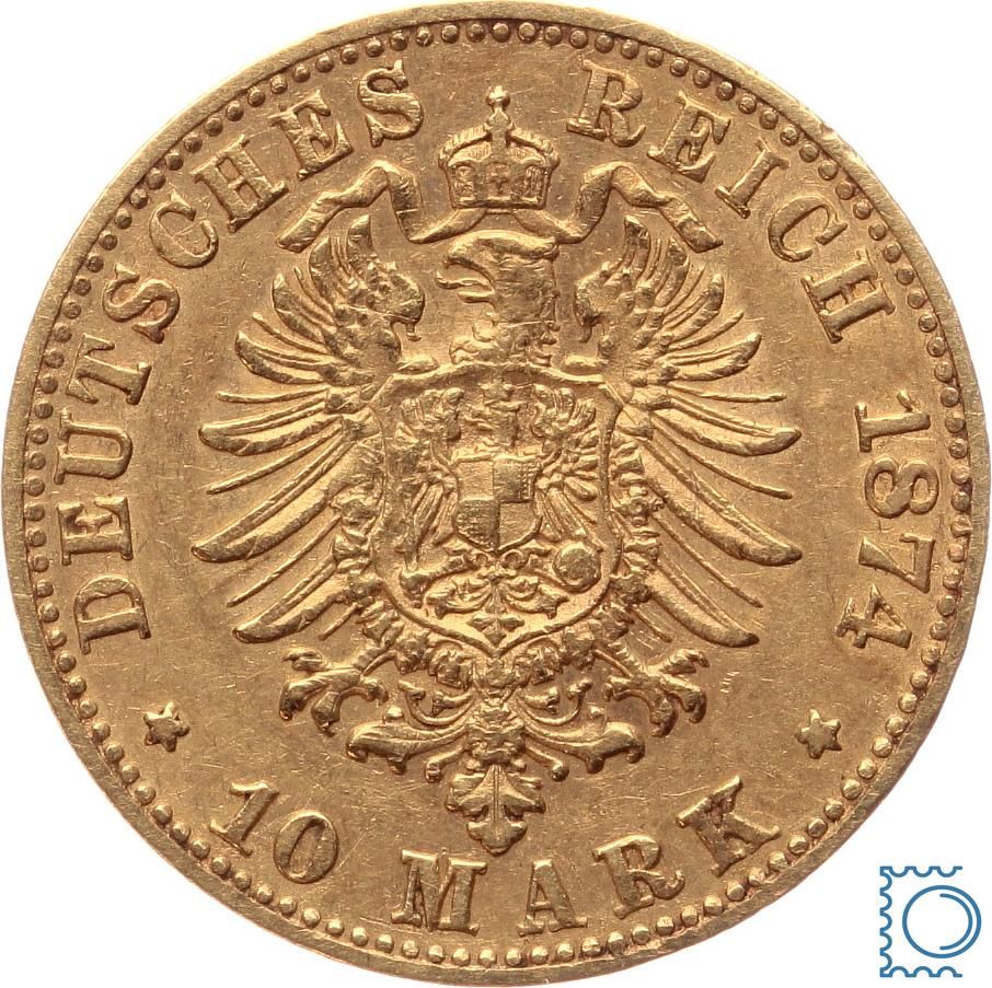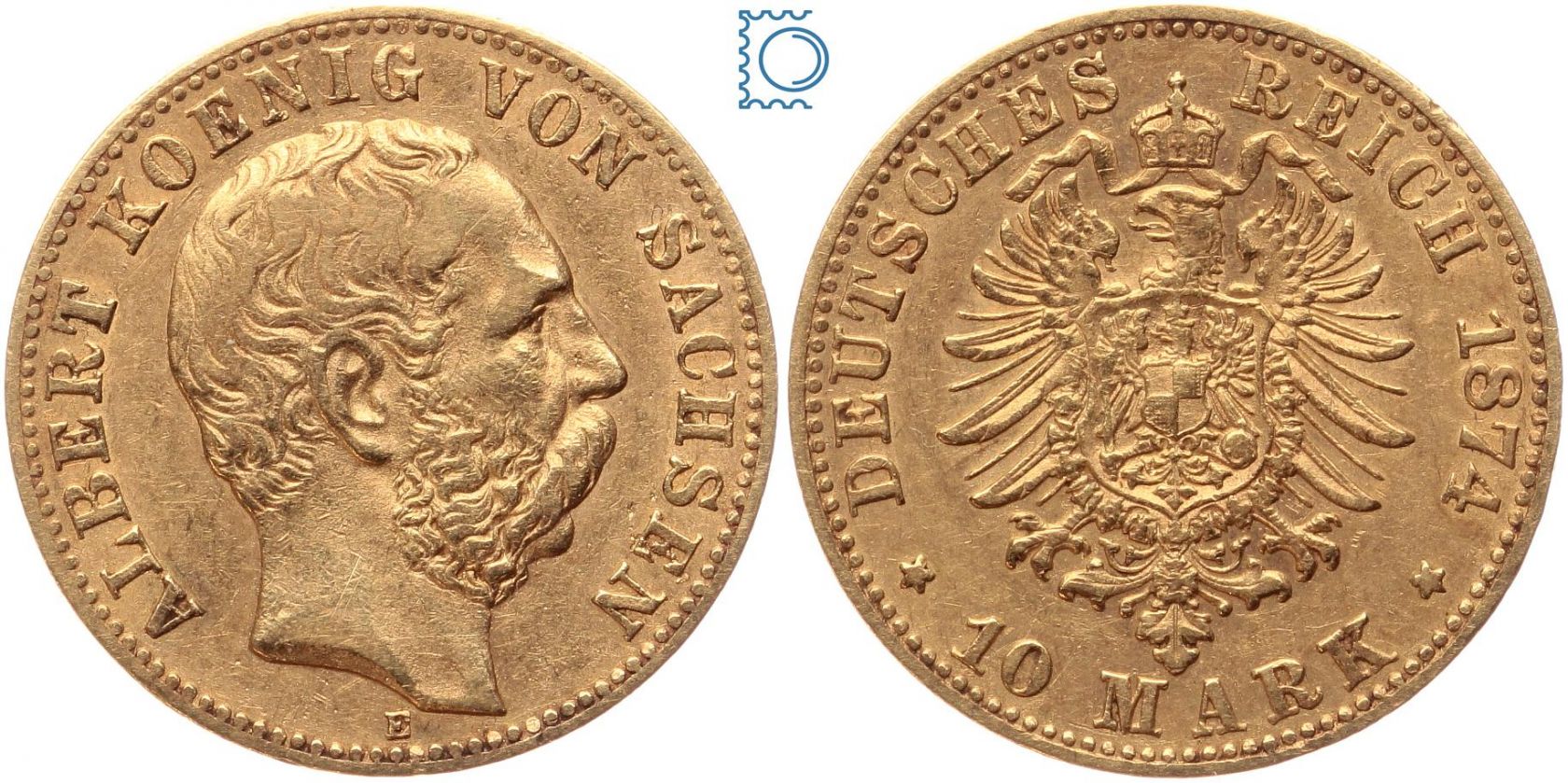 Kaiserreich, 10 Mark Sachsen 1874 E, König Albert, J.261, Goldmünze