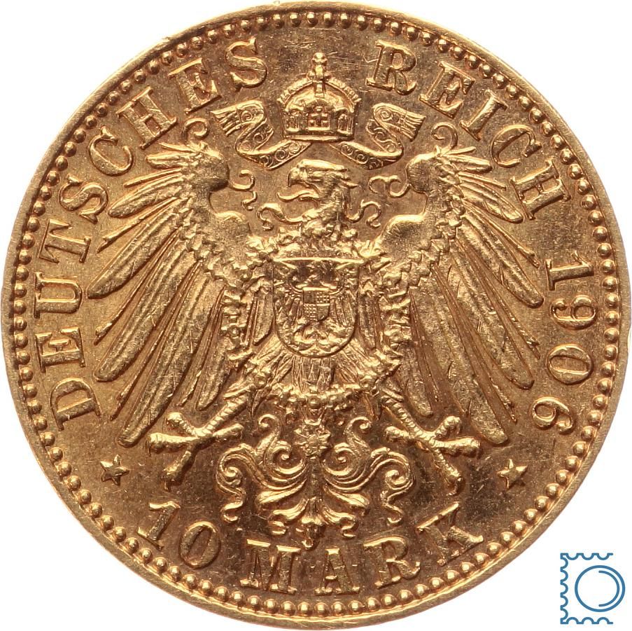 Kaiserreich, 10 Mark Sachsen 1906 E, König Friedrich August, J.263, Goldmünze