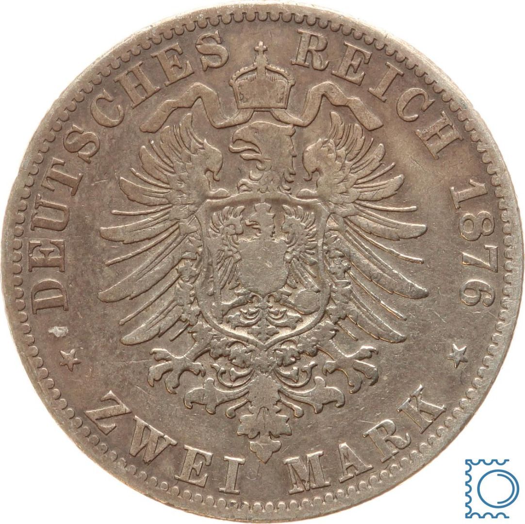 Kaiserreich Anhalt, 2 Mark 1876 A, Friedrich I. (1871-1904), J.19