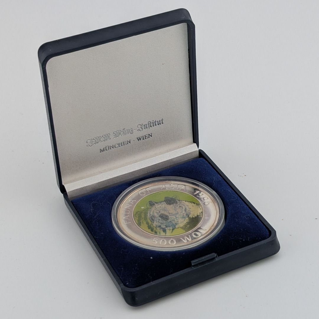 Seltene Sammlermünze aus Korea aus der beliebten Serie „Fauna of Asia“. Diese Ausgabe aus dem Jahr 1996 zeigt eindrucksvolle Tiermotive asiatischer Wildtiere in teilkolorierter Gestaltung und verbindet klassische Prägekunst mit modernen Designelementen.