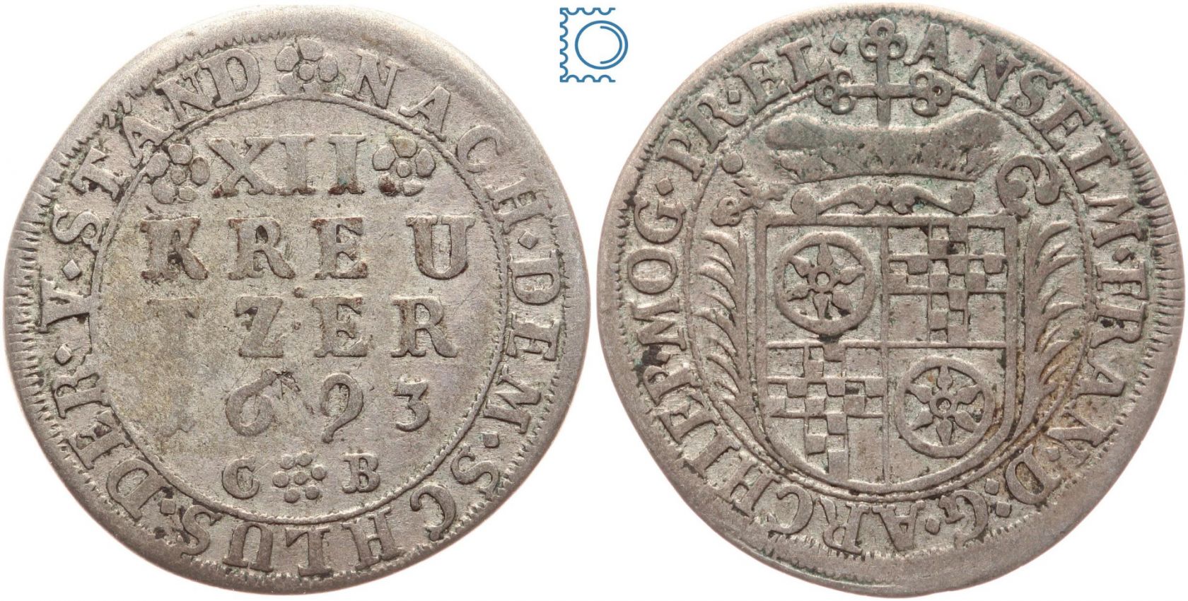 Mainz-Erzbistum 12 Kreuzer 1693 CB Anselm Franz von Ingelheim 1679-1695