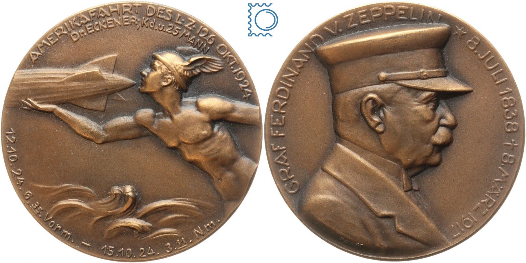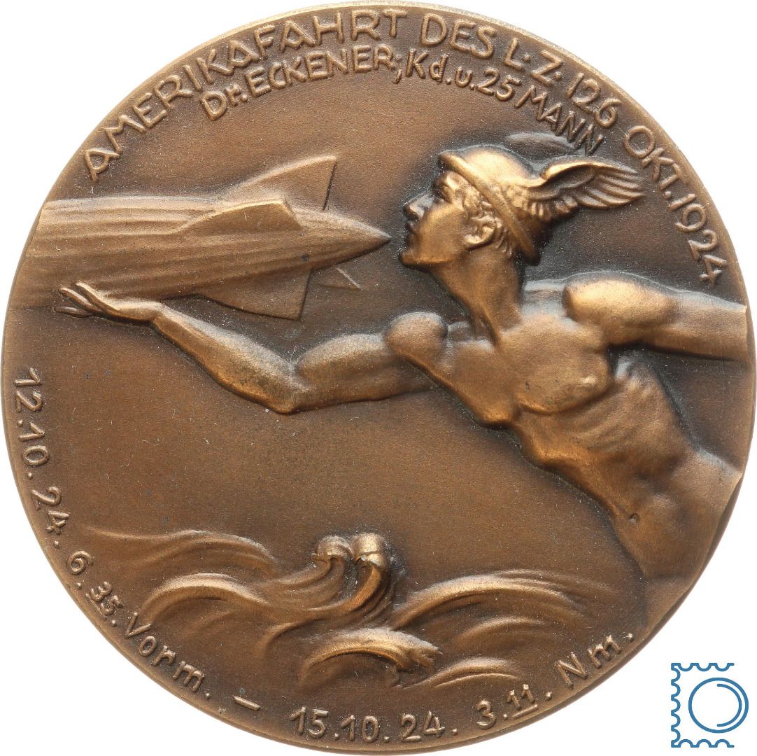 Medaille 1924 | Bronzemedaille 1924 Graf Zeppelin LZ 126 Amerikafahrt Reparationsluftschiff