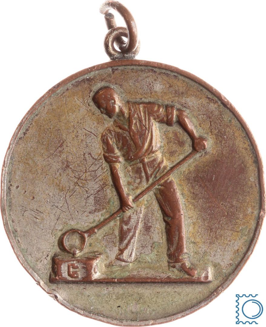 Zentrales Emblem: In der Mitte sind gekreuzte Symbole abgebildet – ein Gewehr (Militär) und ein Spaten/Spatenblatt (Wiederaufbau/Arbeit) – hinter denen ein Zahnrad (Industrie) zu erkennen ist. Dies symbolisiert die Einheit von Volk, Arbeit und Verteidigung.