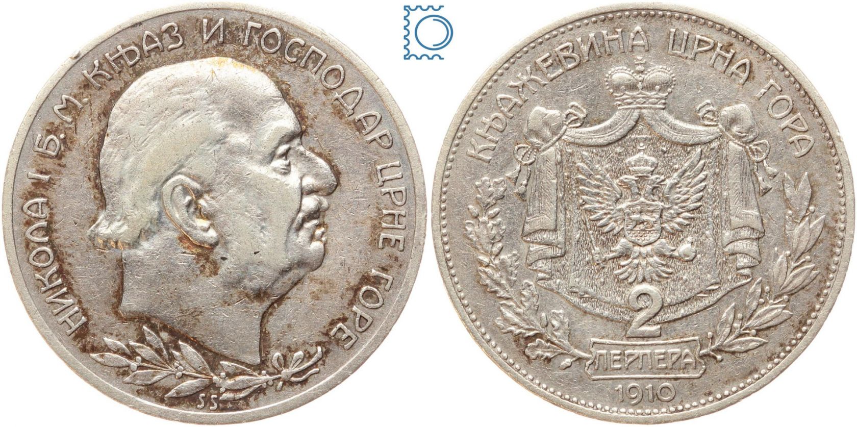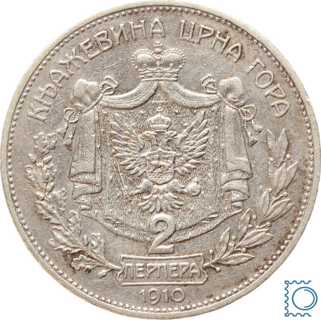 Montenegro 2 Perper 1910, Nikolaus I. (1860-1918), Kursmünze, Silber