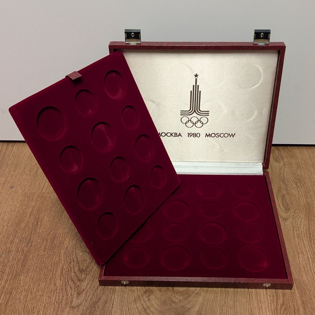 Münzkassette der Olympiade Moskau mit zwei Tableaus. Platz für bis zu 24 Münzen!