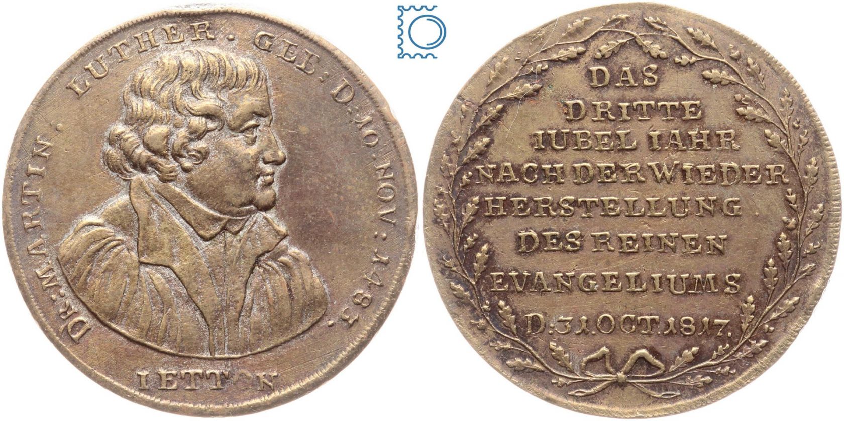 Nürnberg, Stadt - Martin Luther Medaille 1817 - 300 Jahre Reformatin -Henkelspur
