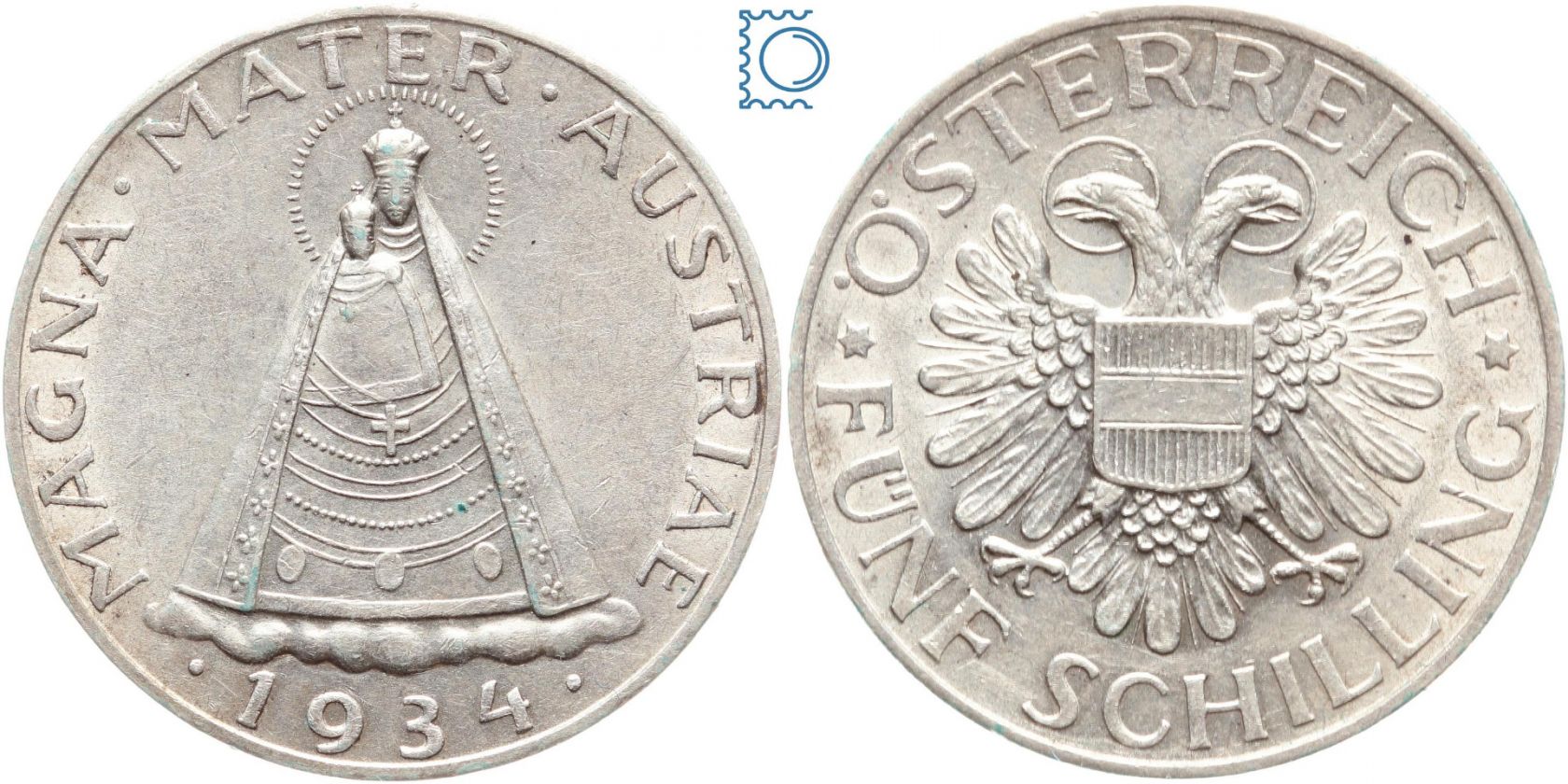 Österreich, 5 Schilling 1934 - Magna Mater | Madonna von Mariazell
