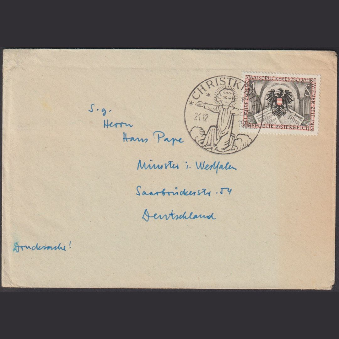 Österreich CHRISTKINDL Stempel 21.12.1954 Brief nach Deutschland